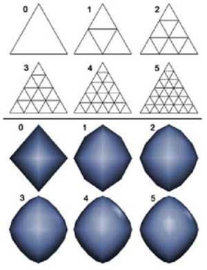 Отметим, что средняя контрольная точка вычисляется несколько иным образом. Затем, задаваемая этими контрольными точками гладкая поверхность тесселируется до необходимого уровня и степени гладкости. Итак, края стыкуются, и с увеличением уровня тесселяции модель становится все более гладкой: