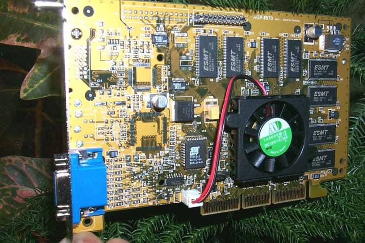 Отличительной чертой данной платы, бросающейся в глаза при первом осмотре RI70, является необычный установленный на чипсете активный кулер. Хотя по сути он такой же, как у большинства аналогов — низкий, утопленный в радиатор вентилятор, имеющий сильно загнутые лопасти, которые раздувают воздух по бокам, есть и отличия. Прежде всего то, что кулер в целом повыше и побольше, да и прорези для выхода горячего воздуха имеются по всему периметру радиатора, а не только по двум сторонам, как у многих других плат. Кулер крепится к видеокарте двумя пружинными зажимами. Между радиатором и чипом проложена теплопроводящая паста, призванная еще улучшить охлаждение чипа.
