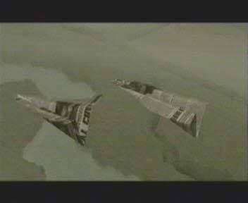На этой последовательности изображений вы можете наблюдать полет бумажных самолетиков над водой. Надо сказать, что по уровню реалистичности эта сцена удалась на все 100%, я опрашивал большое количество народа с мнениями по поводу этого фрагмента: те немногие люди, которые сумели распознать компьютерную графику объясняли свою догадку странной динамикой полета самолетиков (оно и понятно, бумажные самолетики, конечно, так летать не могут) :) Реалистичность этого видеофрагмента обусловлена применением отражений на основе алгоритмов Ray Tracing-а, доступных в 3DStudio MAX. Я совместил анимацию полета видеокамеры c камерой в MAX, а затем создал небольшую отражающую поверхность, содержащую большое количество полигонов, которая сопровождала самолетики на всем пути их следования в конечную точку. Помимо этого, отражающая плоскость по мере движения деформировалась посредством одной из функций раздела SpaceWarps 3DStudio MAX, именуемой Wave, в совокупности с применением модификатора Noise. Это было сделано для создания эффекта волны на отражающей поверхности, что как нельзя более кстати подошло к структуре и динамике поверхности воды на видео. Надо сказать, что по своей реалистичности версия материала Ray Tracing в 3DSMAX2.5 уступает ее реализации в MAX3.0, поэтому для просчета этой сцены была использована именно версия 3.0.