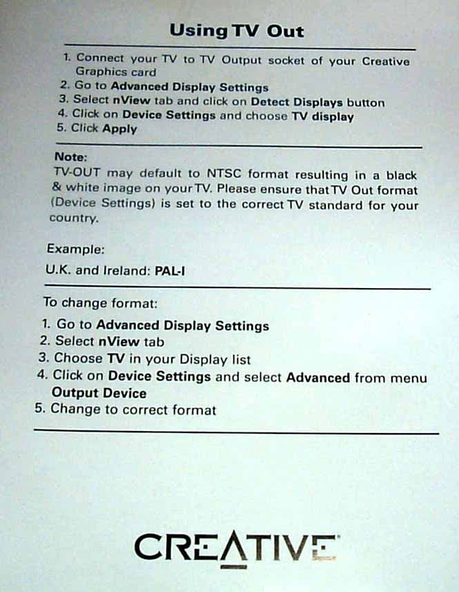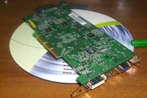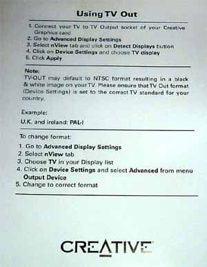 Заметим, что видеокарта оборудована гнездом TV-out (S-Video), а за эту функцию у всех карт на базе GeForce4 MX отвечает сам графический процессор, поэтому больше никаких декодеров не установлено. К плате прилагается памятка по наладке TV-out, что весьма полезно.