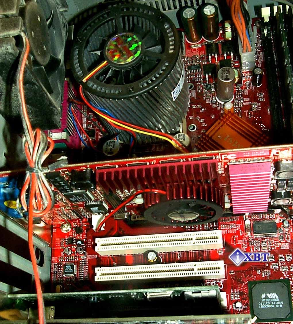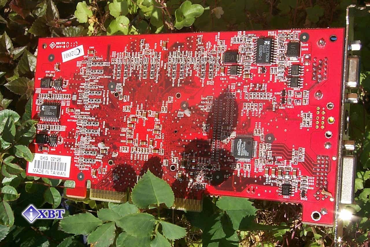 Ну конечно же нельзя пройти мимо цвета PCB у нашей карты! Я ему даже половину вступления в обзоре посвятил :-) Такой красный цвет пока встречается очень редко (можно только припомнить системную плату от MSI — K7Turbo Limited Edition). Кстати, совместно эта парочка смотрится очень даже ничего :-)