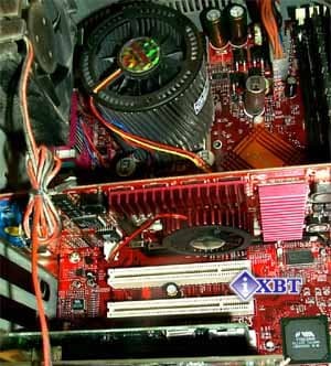 Но такой разгон оказался возможным только после того, как была удалена прокладка, приклеенная к днищу радиатора и только мешавшая нормальному охлаждению. При наличии этой прокладки, уже на частоте 225 МГц работы GPU были замечены артефакты и нестабильность в работе. После замены прокладки на термопасту стабильная работа процессора была обеспечена и на частоте 240 МГц.