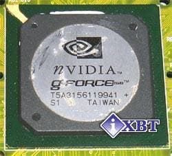 На чипсете приклеен активный кулер, видеокарта не имеет TV-out, хотя места под соответствующие гнезда имеются.