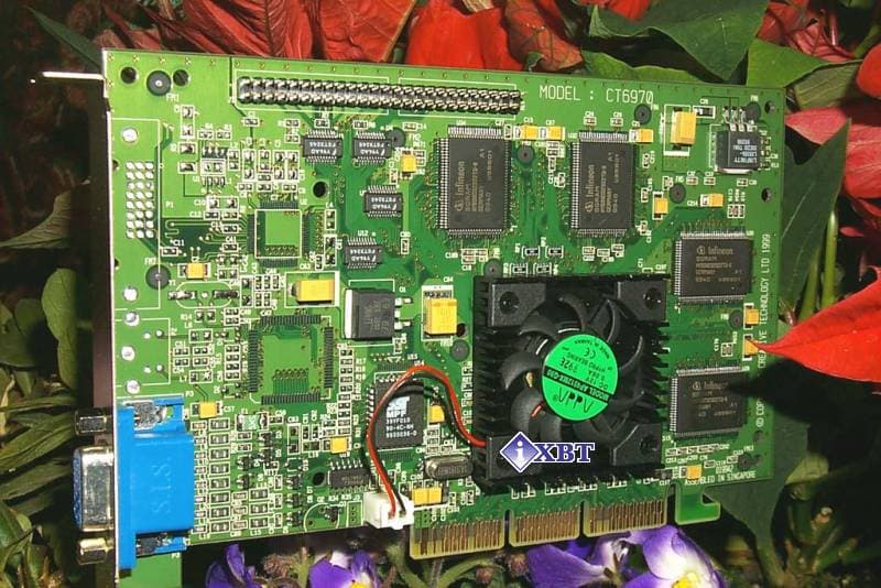 Видеокарта с таким длинным и страшным названием имеет интерфейс AGP 2x/4x и 32 мегабайта 6 ns DDR SGRAM памяти от Infineon, размещенной в восьми микросхемах по обеим сторонам платы. Данная плата является представителем семейства самых быстрых на сегодняший день видеокарт на чипсете NVIDIA GeForce 256, но в то же время и самых дорогих.