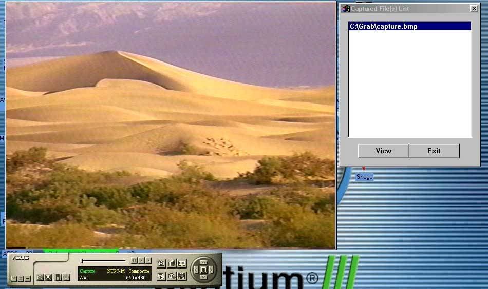 На этом скриншоте мы видим как панель управления TV-in, так и сам экран с передаваемым изображением (использовалась видеокассета с NTSC видеороликом). К сожалению, качество картинки не удалось улучшить, и видимые артефакты на статичном изображении очень заметны. Возможно, тут виноваты и кабели, с помощью которых я подключал видеомагнитофон к видеокарте, их длина превышала 4 метра, поэтому, может быть, повлияли наводки.