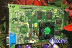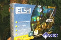 Плата с интерфейсом AGP 2x/4x, имеет на борту 32 мегабайта SDRAM (SDR) 6 ns памяти, размещенной в 4-х 64-мегабитных модулях. Как можно видеть, дизайн этой карты существенно отличается от рассмотренных ранее плат, имеющих SDR-память. Карточка выглядит очень компактной, имея при этом радиатор очень большого размера, на котором установлен вентилятор. Плата не имеет никаких дополнительных функций, к которым уже привыкли некоторые пользователи (ТВ-выход, вывод сигнала на LCD-монитор), однако можно заметить наличие на печатной плате нестандартного разъема белого цвета. Вероятно, ELSA собирается выпускать какие-то дочерние платы (вроде Rainbow Runner Studio от Matrox), которые будут функционировать только совместно с ELSA Erazor X и им подобными. Ни в документации, ни на сайте ELSA я не нашел описания предназначения этого разъема.