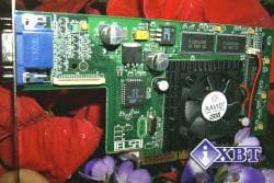 Видеокарта, отличающаяся от предыдущей, по сути, только цветом, имеет AGP 2x/4x интерфейс и 32 мегабайта 6 ns DDR SGRAM памяти производства Infineon. Отличие данного экземпляра от предыдущего состоит лишь в том, что на плате смонтированы и TV-out, и вывод на LCD-монитор. Причем, гнездо TV-out выполнено в конструктиве S-Video, однако в комплект входит переходник на "тюльпан" (Composite).