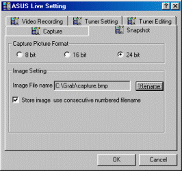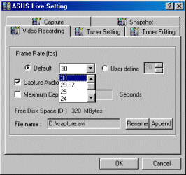 А теперь кратко рассмотрим, какие возможности предоставляет нам ASUS Live v.3.5. Это не только прием сигнала с ТВ и захват отдельных кадров, но запись видеопотока в виде ролика. Для этого, прежде всего, надо выбрать разрешение, тип кодека и способ сжатия: