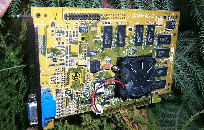 Что еще также бросилось в глаза? То, что ASUSTeK Computer изменил в данной ситуации своей традиции выпускать видеокарты по своему дизайну, сильно отличному от reference card. PCB ASUS AGP-V6600/Pure — полностью соответствует дизайну, предложенному NVIDIA для SDR-карт. Таким образом, первый раз за последние полтора года ASUS выпустил массовую видеокарту на SDRAM-памяти.