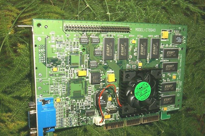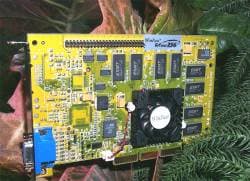Названные микросхемы памяти образуют в сумме 32 мегабайта и размещены по обеим сторонам плат. Сами карты имеют AGP 2x/4x интерфейс.