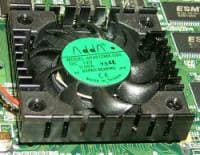 Плата имеет текстолит салатового цвета (характерного для Creative), на чипсете приклеен активный кулер (опять-таки в стиле Creative), причем точно такой же, какой мы могли наблюдать у Creative 3D Blaster Riva TNT2 Ultra. По-моему, данная конструкция кулера не совсем подходит для такого сильногреющегося чипсета, как NVIDIA GeForce 256. Посудите сами: вентилятор обдувает совершенно ровную поверхность радиатора (ребра на последнем отсутствуют). Также можно заметить, что и этот