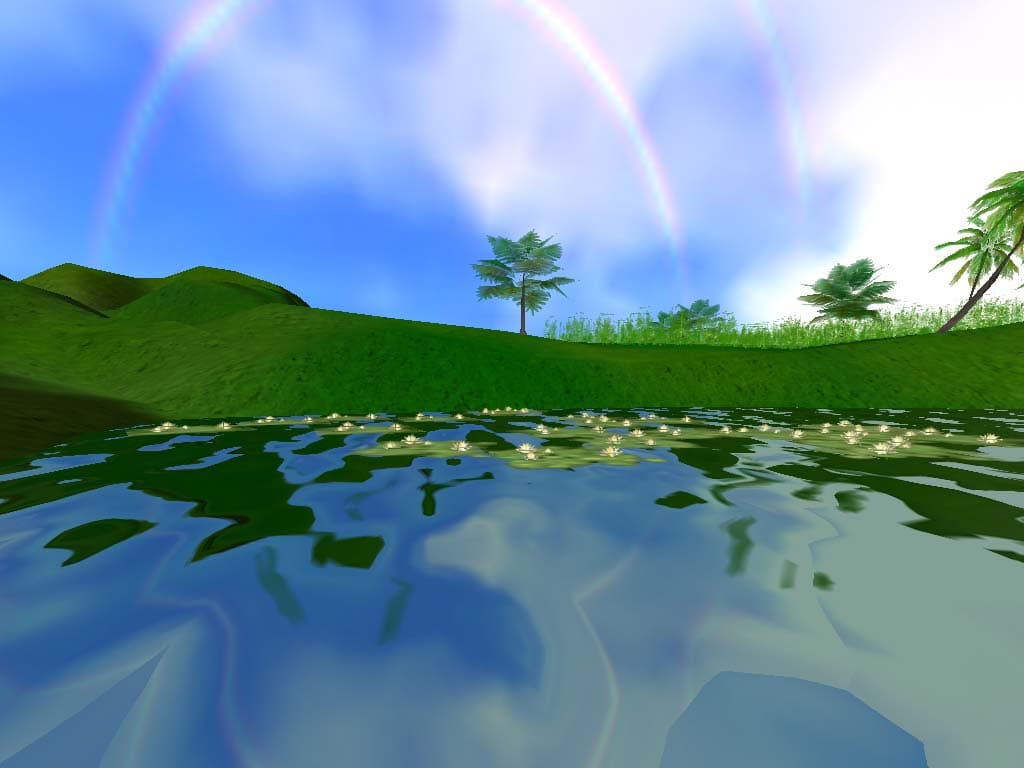 Очень хорошо видно, как отлично реализован EMBM в GLMark, и как эту технологию прекрасно поддерживает NVIDIA GeForce3. То, что GeForce2 этого просто не умеет, тоже хорошо известно. Поэтому ничего удивительного в такой мрачной воде, которую мы видим на этой карте, нет. А вот почему RADEON не смог реализовать свой потенциал — непонятно. Вроде все полагающиеся расширения в его драйвере имеются. Причины может быть две: