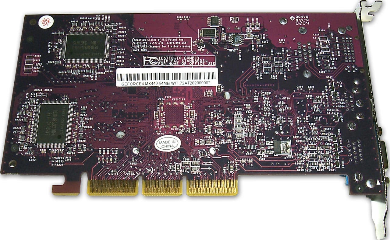 - MSI GF4MX440 (GeForce4 MX 440, 270/200 (400) МГц, 64 МБ);