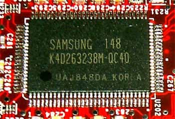 | Память производства Samsung, время выборки 4ns. Частота работы видеокарты 270/200 (400) МГц. | ![]() |