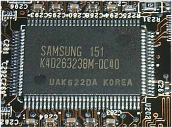 Как можно увидеть из представленных фотографий, все видеокарты, кроме Palit Daytona GeForce4 MX 440, комплектуются памятью со временем выборки 4ns, что означает потенциальную способность работы ее на 250 (500) МГц. Почему потенциальную? Ниже расскажем.