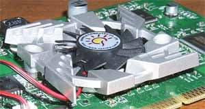Также можно понять, что все 4 карты представляют собой размноженную копию эталонной карты. Только лак на текстолите имеет разные цвета, вот и все отличия. Хотя… Вот кулеры. Они-то точно отличаются. Просто, по-видимому, компаниям уже нечего вносить в конструктивы самих плат, вся дизайнерская мысль уходит на охлаждающие устройства :-). Надо иметь в виду, что частота работы GeForce4 MX 440 в принципе не требует сильного охлаждения (например, ASUSTeK вообще не ставит на свои карты кулера с вентилятором, ограничившись пассивным игольчатым радиатором).