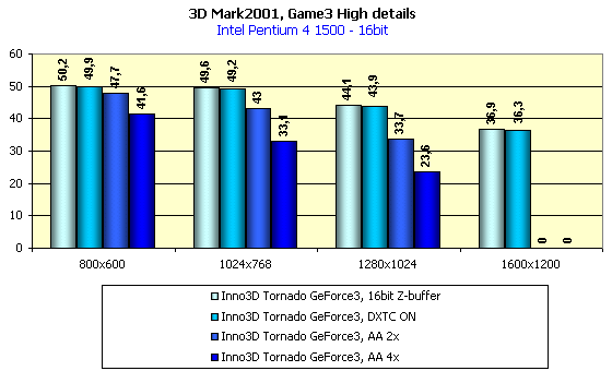 Тестирование проводилось в 16- и 32-битном цвете при активизации DXTC-технологии компрессии текстур.