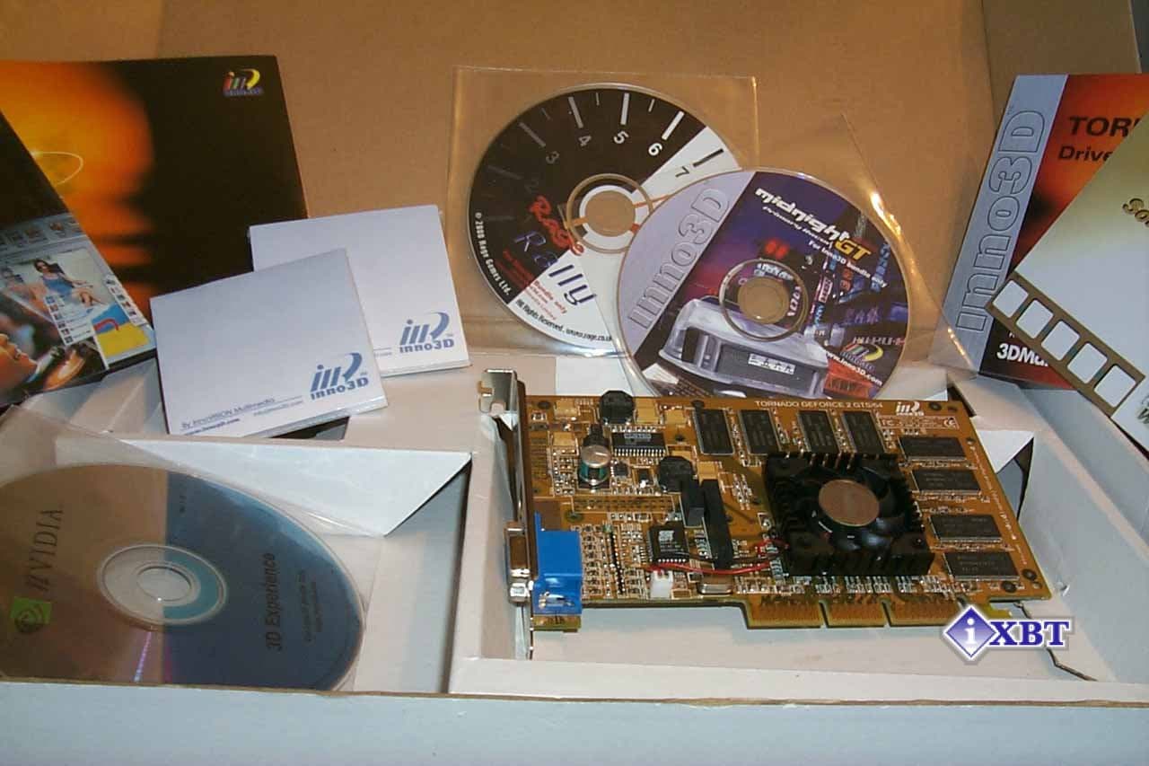 Тем не менее, видеокарты на базе GeForce2 GTS с 64 Мб локальной видеопамяти вышли на рынок. Цены, разумеется, нельзя назвать низкими. Кстати, о ценах: еще одной причиной, почему я заинтересовался видеокартой от Innovison, является относительно низкая стоимость 64-мегабайтной версии карты на NVIDIA GeForce2 GTS, которая способна конкурировать по цене с обычными 32 Мб картами. Посмотрим внимательно на Inno3D Tornado GeForce2 GTS/64.