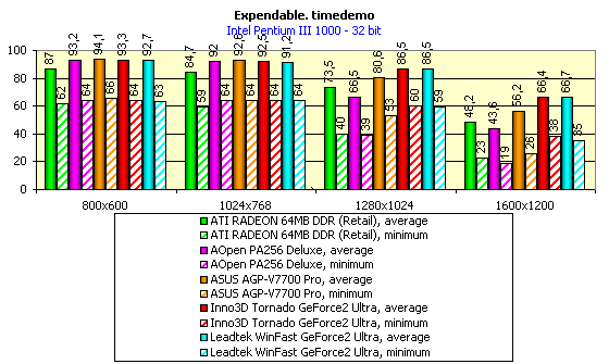 - Rage Expendable (timedemo) — игровой тест, демонстрирующий работу платы в Direct3D в режиме мультитекстурирования.