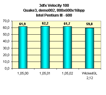 На конец августа 2000 года последняя версия драйверов от 3dfx — 1.05.02. Представлены три версии драйверов: 3dfx 1.05.00, 1.05.01 и 1.05.02, а также для OpenGL-приложений — мини-драйвер от Metabyte WickedGL 2.12.