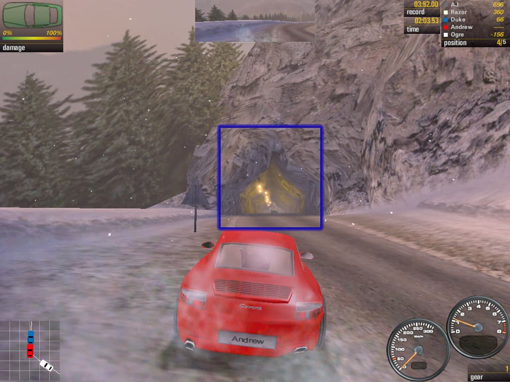 В Need For Speed: Porshe 2000 ситуация с туманом весьма странная. Еще до въезда в тоннель можно видеть дымку в нем: