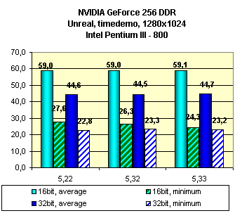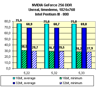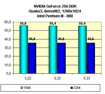 Как можно видеть, смена версий драйверов у этой карты ничего не дает. Поэтому можно выбирать любую нравящуюся версию. Чисто из соображений надежности могу посоветовать пользоваться версией 5.22, так как это официально вышедшая версия.