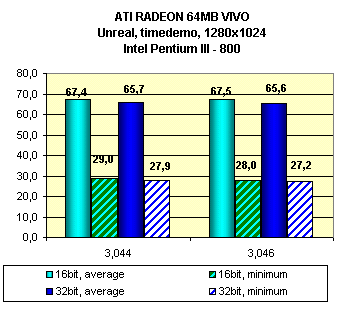 Как можем видеть, различий между драйверами по производительности практически нет. В драйверах 3044 при помощи внесения изменений в registry можно отключить HyperZ, однако глупо отключать особенность ATI RADEON, увеличивающую производительность платы.