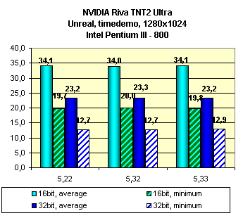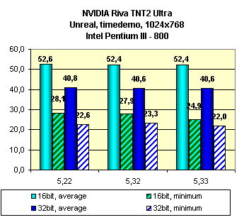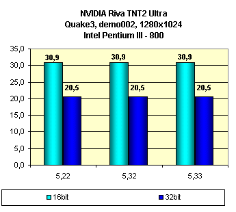 Как можно видеть, смена версий драйверов у этой карты ничего не дает. Поэтому можно выбирать любую нравящуюся версию. Чисто из соображений надежности могу посоветовать пользоваться версией 5.22, так как это официально вышедшая версия.