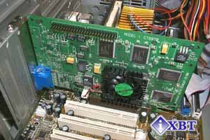 - память — 32MB DDR SGRAM в 8-ми микросхемах Infineon 6ns, частота работы 150 (300) МГц, 128-битная шина обмена с чипсетом;