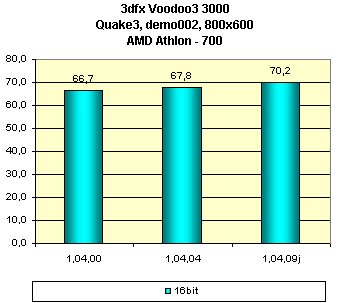 Как мы видим, особого прироста в скорости последняя версия драйверов не принесла этой карте. Что выглядит контрастом относительно феномена Velocity 100, получившей рост производительности на драйверах 1.04.09J. Однако, должен отметить, что качество изображения в 3D выросло на этих драйверах.