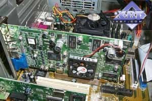 - память — 64MB DDR SDRAM в 8-ми микросхемах Hyundai 5.5ns, частота работы 166 (333) МГц, 128-битная шина обмена с чипсетом;
