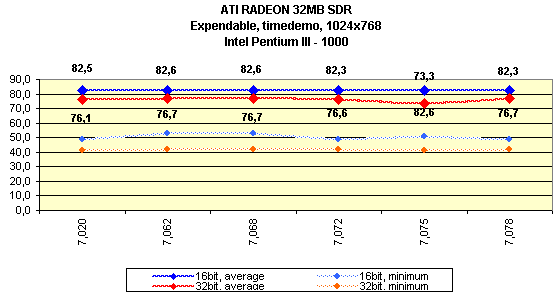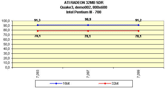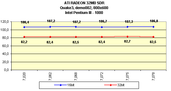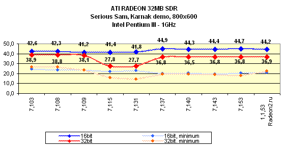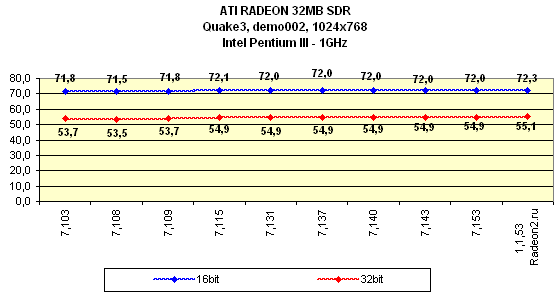Я особо отмечу, что на всех версиях драйверов, начиная с 7.115, тестирование проводилось при активированной S3TC, поэтому результаты в Quake3 на этих версиях выше, однако надо сказать, что на этих же версиях компрессия текстур почему-то отказалась работать на платформе i815 (Pentium III). То есть, Quake3 просто игнорировал эту функцию при испытаниях.
