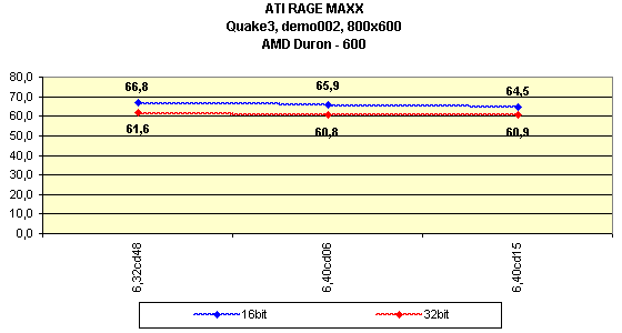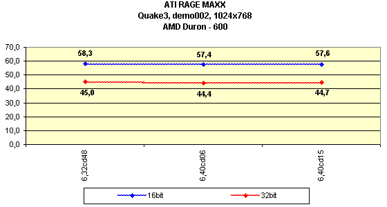 Что касается 2D-качества, то у данной карты оно хорошее и находится на уровне ATI RAGE 128 PRO, что не случайно, так как в 2D-режиме работает тот же RAGE 128 PRO — чипсет. И лишь в 1600х1200 можно заметить небольшое "замыливание" картинки на некоторых мониторах.