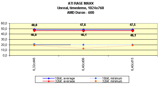 Многие артефакты, присущие ATI RAGE 128 PRO, сохранились и тут. В Unreal и Unreal Tournament можно наблюдать ошибки текстурирования: