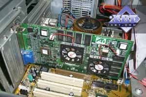 Этот тандем чипов представляет видеокарта ATI RAGE MAXX 64MB, AGP.