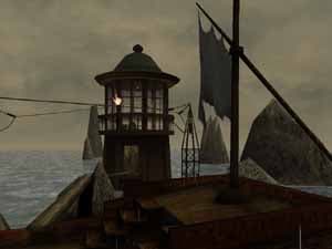 В игре Real MYST можно видеть очень неприятное явление в виде муара, мерцания текстур, "песочка" по склонам скал: