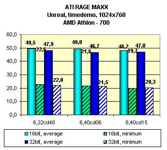 Многие артефакты, присущие ATI RAGE 128 PRO, сохранились и тут. В Unreal и Unreal Tournament можно наблюдать ошибки текстурирования: