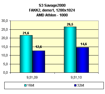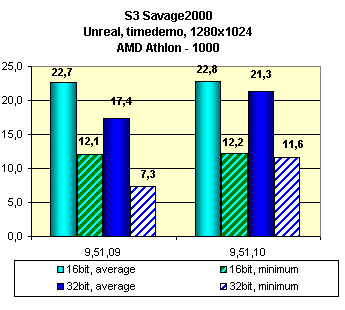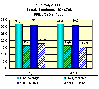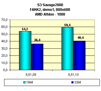Видно, что установка новых драйверов версии 9.51.10 принесла неплохой прирост в ряде игр. Поэтому есть смысл использовать именно эту версию. Также хочу отметить, что все последние версии драйверов для работы через API S3 Metal весьма посредственно работают в игре Unreal (в виде наличия многочисленных глюков)