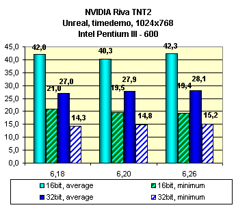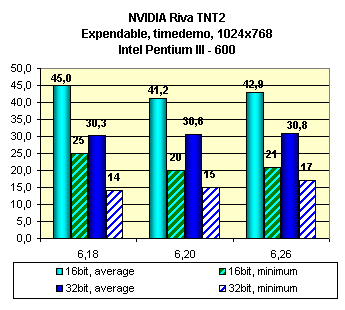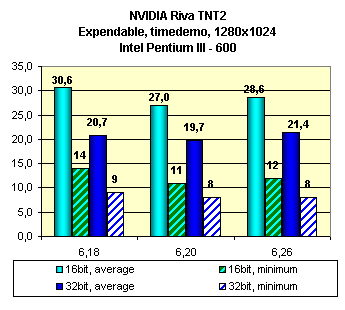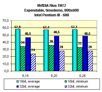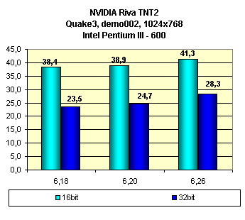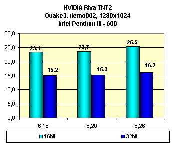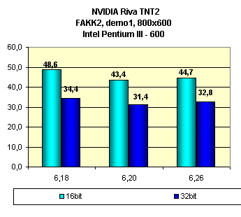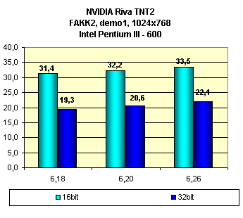 Видно, что оценка влияния смены версий драйверов у этой карты неоднозначна. В ряде случаев последняя версия 6.26 мало чего дает.