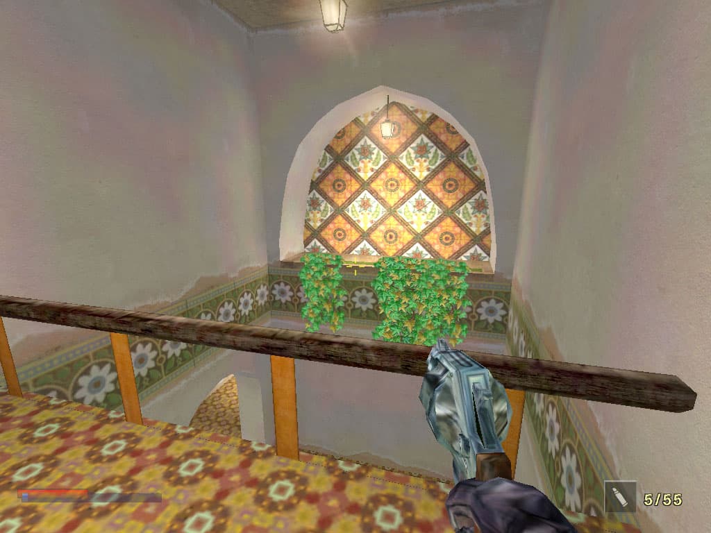 Наличие трилинейной аппроксимации, а не "честной" трилинейной фильтрации также понижает рейтинг карты (аппроксимацию вы можете видеть на скриншотах из Giants выше, обратите внимание на песчаную почву). Вы можете сравнить нижеприведенные скриншоты с эталонными, полученными на NVIDIA GeForce3.