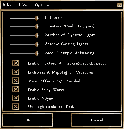 Radeon 9000 Pro Radeon 9600 Radeon 9700 Pro Radeon 9800 Pro | 3.5 3.6 3.7 3.8 3.9 | Из игры не включается анизотропная фильтрация. Видимо, так и было задумано, поскольку нормально она включается только на GF'ах (4MX, Ti4600, FX5600/5800/5900). | — |