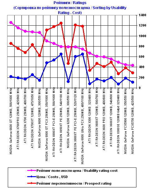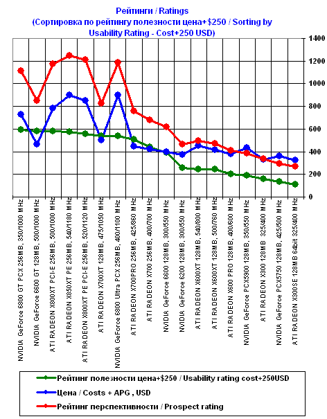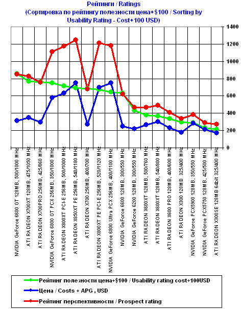 Графики рейтингов полезности 3D-акселераторов на конец месяца (платформа Pentium4, i925X)