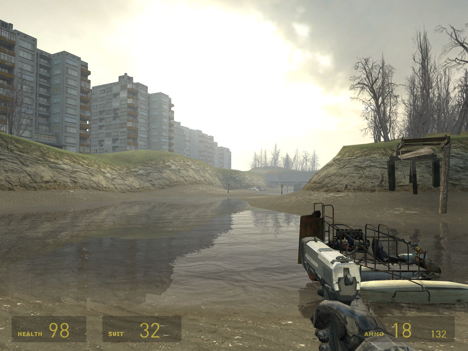 Последние версии HL2 неправильно отображают туман на старых версиях драйверов для GF6800. В результате игра выглядит чрезмерно светлой. Заметим, что игра честно предупреждает пользователя, что версия драйвера его видеокарты устарела и рекомендует скачать и установить более свежие драйверы. Также стоит отметить, что бандинг на водной поверхности присутствует и в этой, очень старой версии ForceWare, заставляя нас отказаться от мысли, что это некая оптимизация-заточка под водные шейдеры HL2 — до выхода HL2 в момент появления этого драйвера оставалось еще более полугода. |