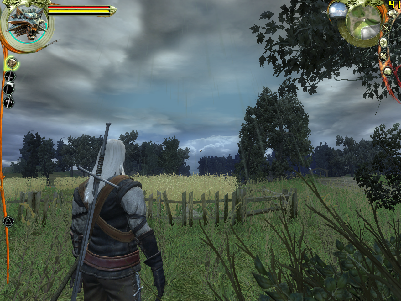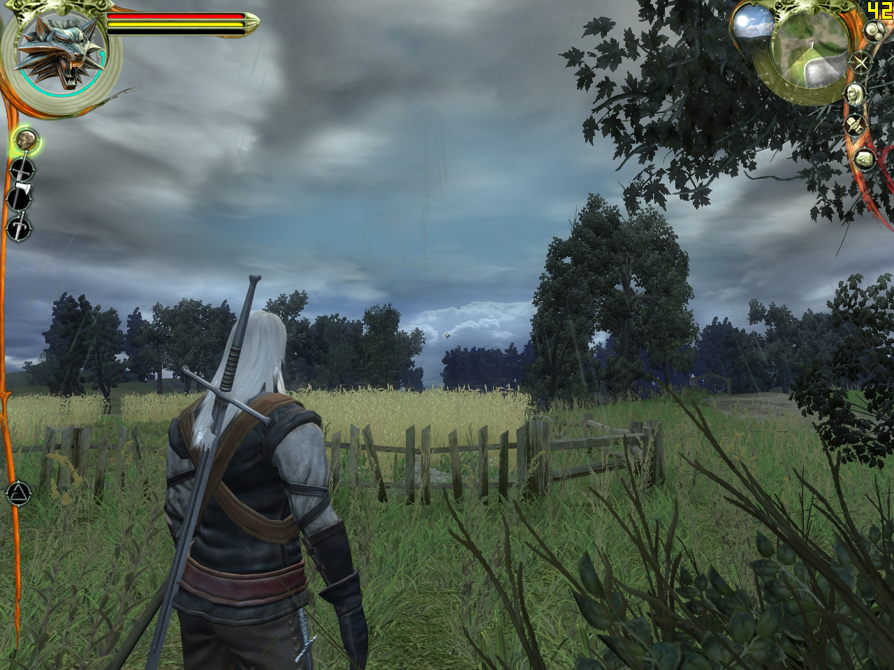 The Witcher, к сожалению, не умеет сохранять вьюпоинт, поэтому нам пришлось выставлять его вручную — идеального соответствия скриншотов не ждите. Впрочем, для оценки качества сглаживания прозрачных текстур оно, пожалуй, и не требуется.