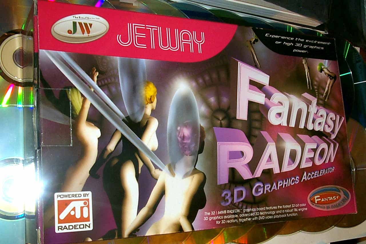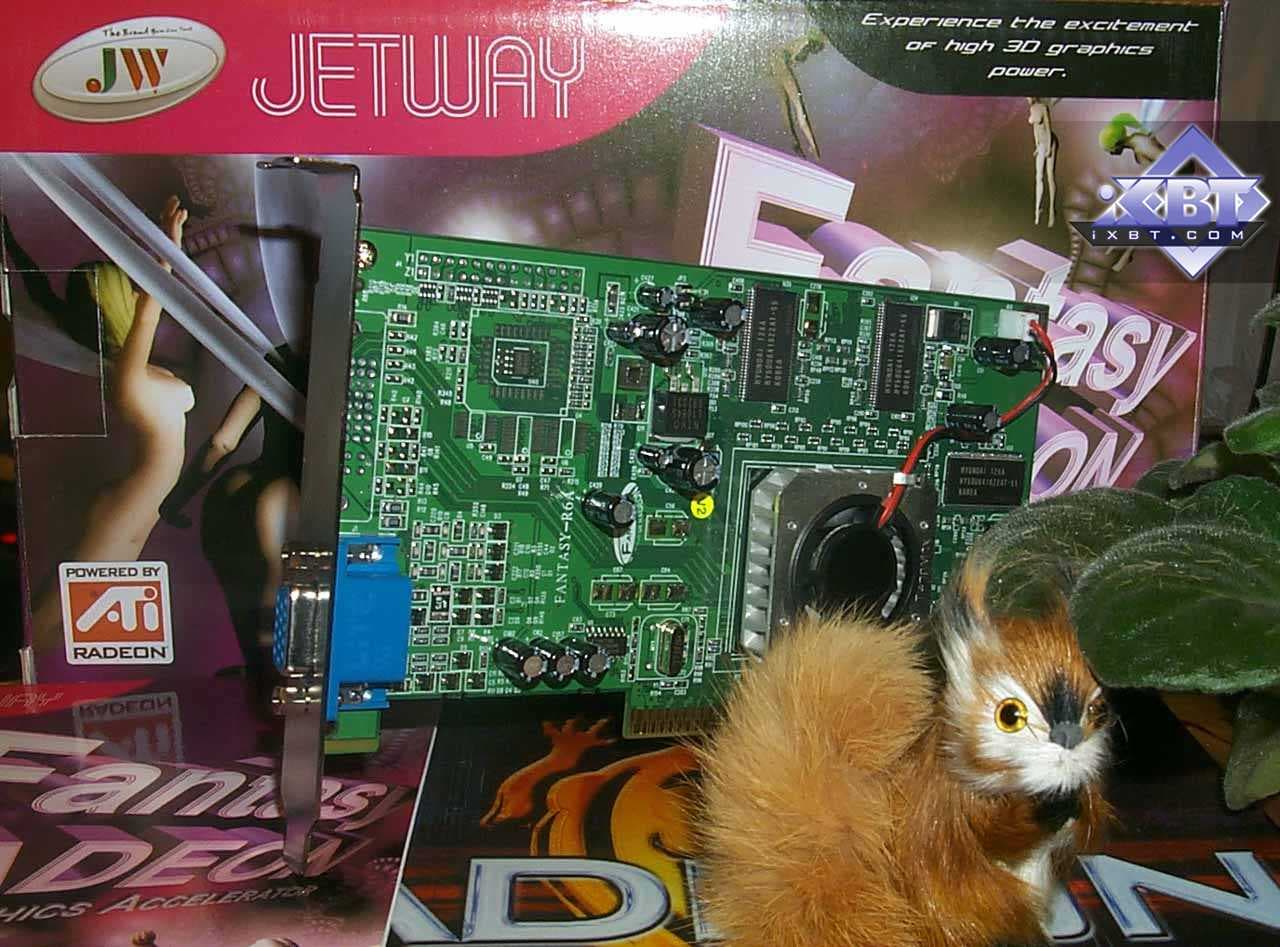 Разумеется, поскольку масса тамошних фирм уже либо повязаны обязательствами с NVIDIA, либо прекрасно "кормятся" на выпуске дешевых карт на чипах последней, особого энтузиазма новая стратегия ATI у азитов не вызвала. Но если вода камень точит, то вояжи посланников из Канады тоже стали приносить свои плоды. Ряд достаточно крупных фирм уже объявил, что они приступают к производству видеокарт на базе процессоров от ATI. Кое-какие карты на базе RADEON VE мы уже видим на прилавках и наших фирм, однако плат на базе RADEON с DDR-памятью пока практически не встречалось. И вот, первая ласточка. Компания Jetway, что известна своими материнскими платами, осуществила выпуск полноценных 64-х мегабайтных карт с DDR-памятью на базе RADEON. При этом стоимость таких карт составляет всего около $100, в отличие от 150-160 за "родную" подобную плату от ATI (цены на 20-е октября).