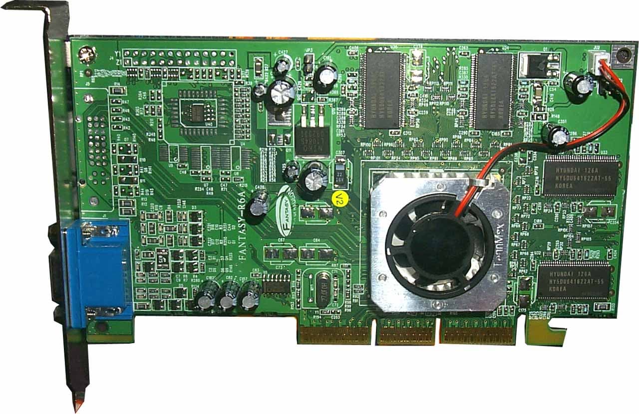 Карта Jetway Fantasy RADEON-A1 64MB DDR имеет AGP x2/x4 интерфейс, 64 Мб DDR SDRAM памяти, размещенной в 8-ми микросхемах на лицевой и оборотной сторонах PCB.