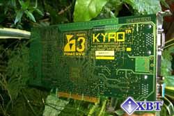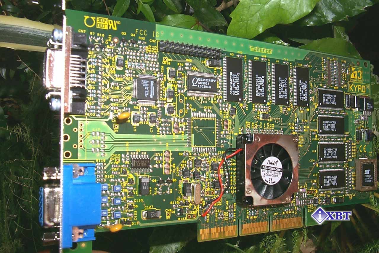 Чипы памяти произведены фирмой IBM, имеют время доступа 6.8 ns и рассчитаны на рабочую частоту 143 МГц. Возможно, на этой частоте память и функционирует, хотя есть предположение, что ее частота составляет 125 МГц. Во всяком случае, никаких утилит для точного измерения частоты памяти пока нет, поэтому можно только догадываться. Точно также о частоте работы KYRO можно либо догадываться, либо пользоваться слухами из Сети. Предположительно, чип работает на 125 МГц (показания MadOnion 3D Mark2000 косвенно подтверждают эту гипотезу), однако в Сети есть мнения и о том, что чип работает на частоте 115 МГц.