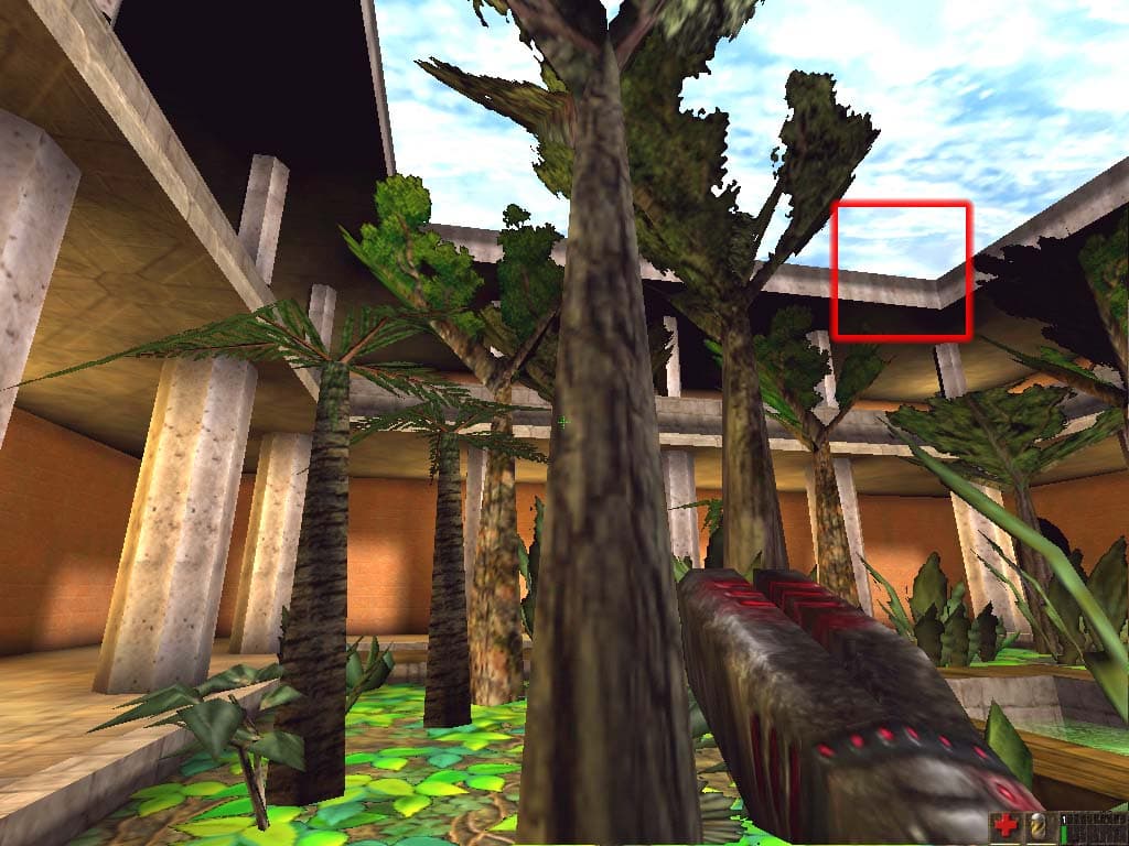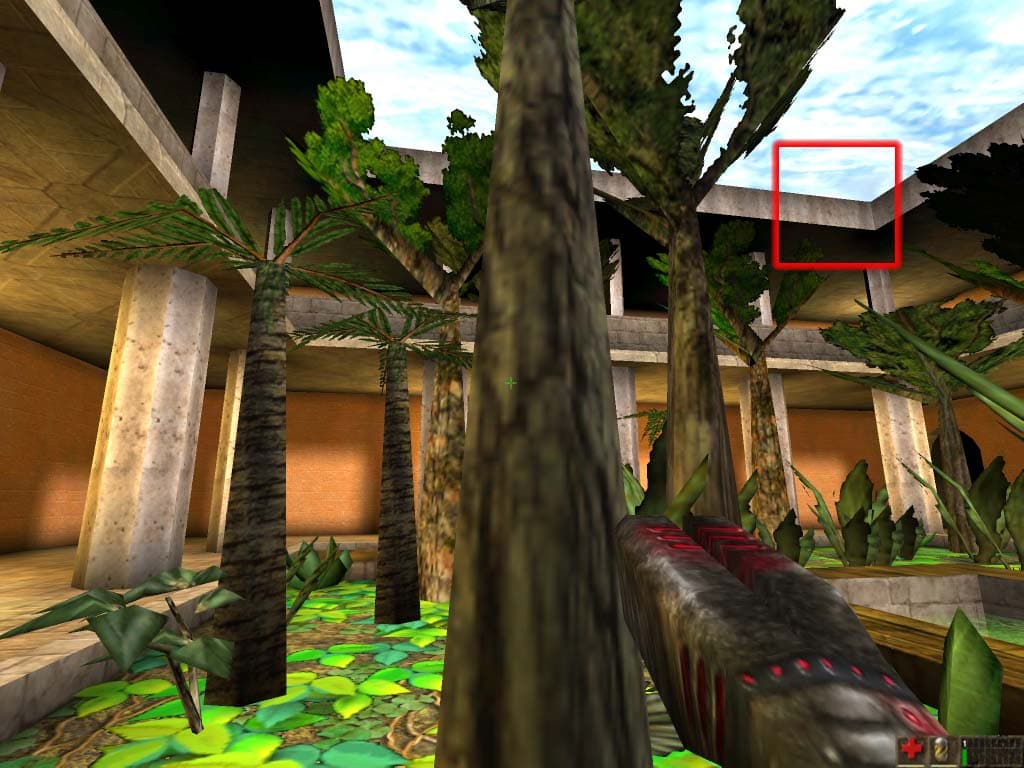 В данном случае потери катастрофичны. Все пятна света на воде, получаемые при помощи карт освещения (lightmaps), превратились в убогие квадраты. Это огромный минус, свойственный автокомпрессии. Мы вынуждены констатировать, что S3TC в автоматическом режиме на любых ускорителях желательно использовать только в тех играх, которые изначально были рассчитаны на применение компрессии текстур. Для примера приведем кадры из других игр (Expendable и Unreal) также изобилующих ужасными артефактми в режиме автокомпрессии: