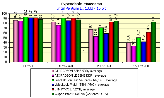 - Rage Expendable (timedemo) — игровой тест, демонстрирующий работу платы в Direct3D в режиме мультитекстурирования;
