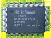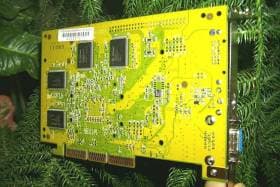 Микросхемы памяти произведены фирмой Infineon и имеют время доступа 6ns, что свидетельствует о том, что данная память может работать на частоте 166 МГц. NVIDIA рекомендует использовать в DDR-картах 150-166 МГц память, однако номинальная частота работы памяти на данной плате (как, впрочем, и на всех остальных картах этого класса) равна 150 МГц (300 МГц в пересчете на скорость SDR-памяти). Замечу, что иногда частота работы DDR-памяти приводится в эквивалентной (вдвое большей) частоте SDR-памяти. То есть, если говорится, что частота работы DDR-памяти равна 300 МГц, то следует иметь в виду, что, на самом деле, она работает на 150 МГц. Чипсет же работает на стандартной для всех GeForce 256-карт частоте — 120 МГц.